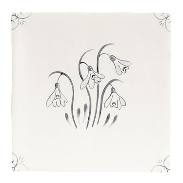 English Delft Snowdrop Charcoal Matt Tile